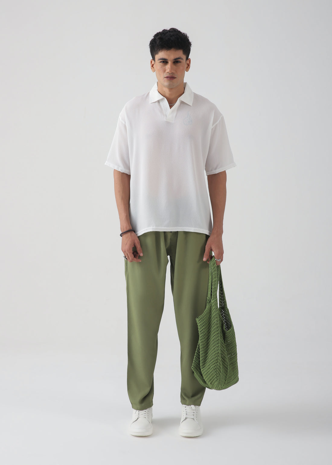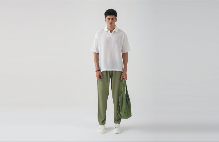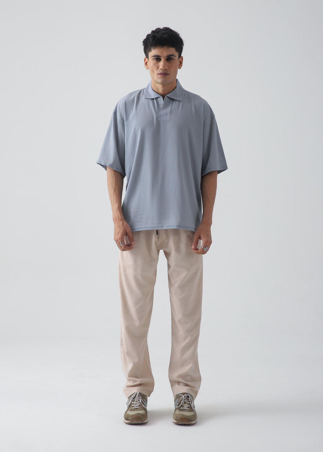 This soft Cloud Polo offers a relaxed fit with clean shoulder seams, paired with Brown Relax Fit Trousers that drape comfortably for an effortless, refined look.