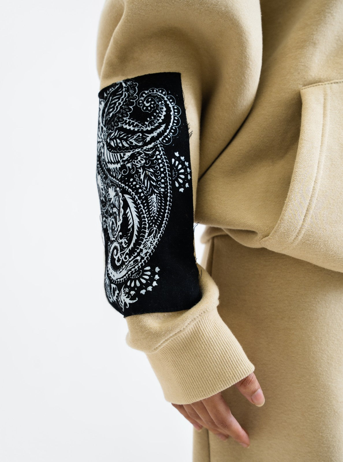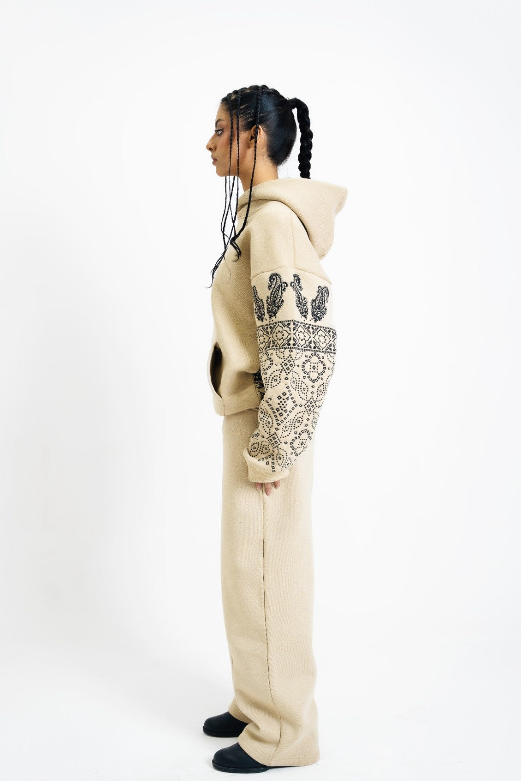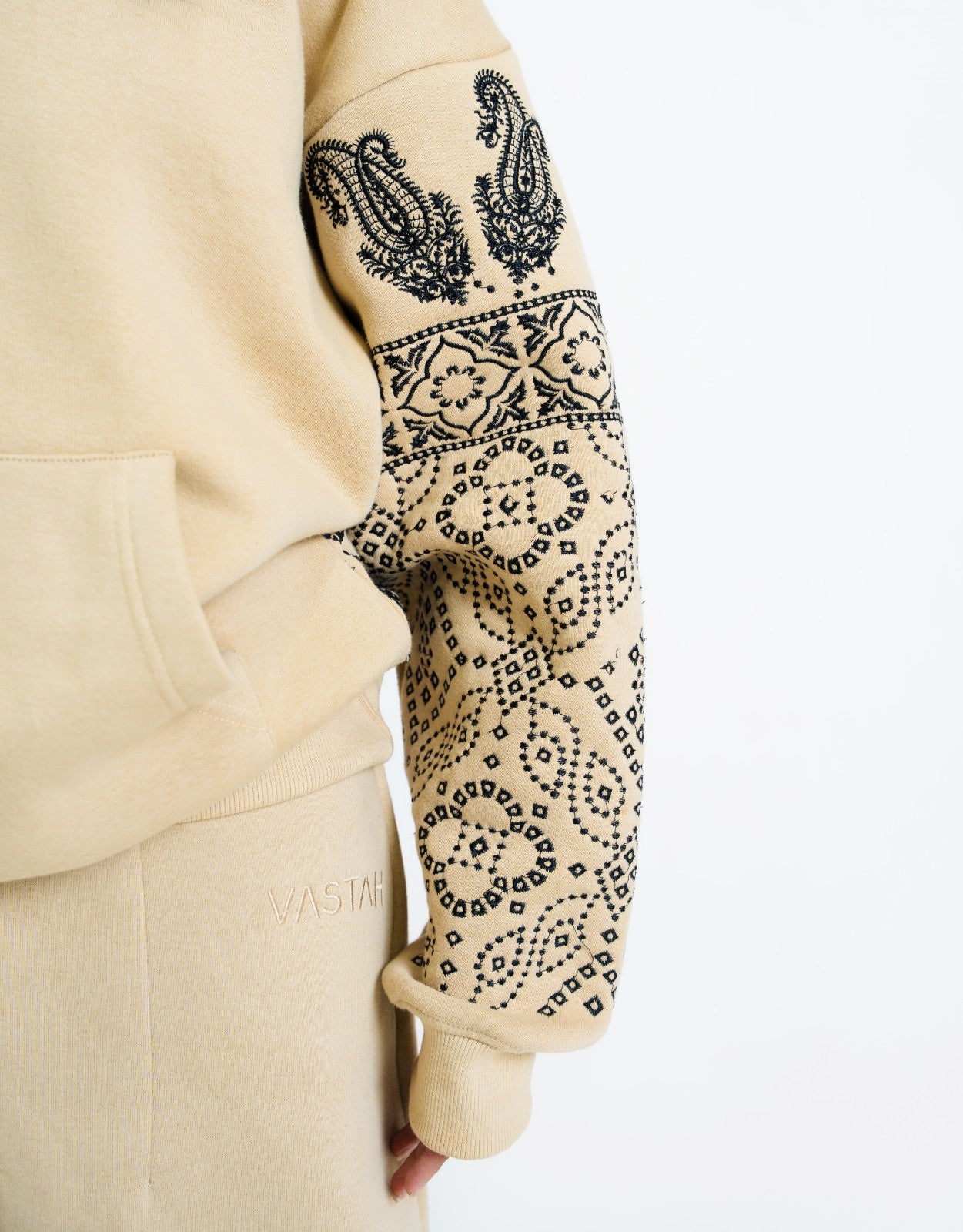 A premium heavyweight fleece hoodie designed for warmth and statement detail. Crafted in an oversized silhouette, it features intricate embroidery across one sleeve with 225,000 stitches, signature VASTAH branding on the front, and screen-printed artwork at the back. Finished with an embroidered patch detail, this piece reflects bold craftsmanship balanced with refined minimalism.