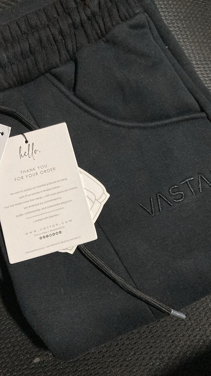 Details:Front panel embroidery with “VASTAH” branding · Matching trouser with tonal “VASTAH” embroidery near the pocket