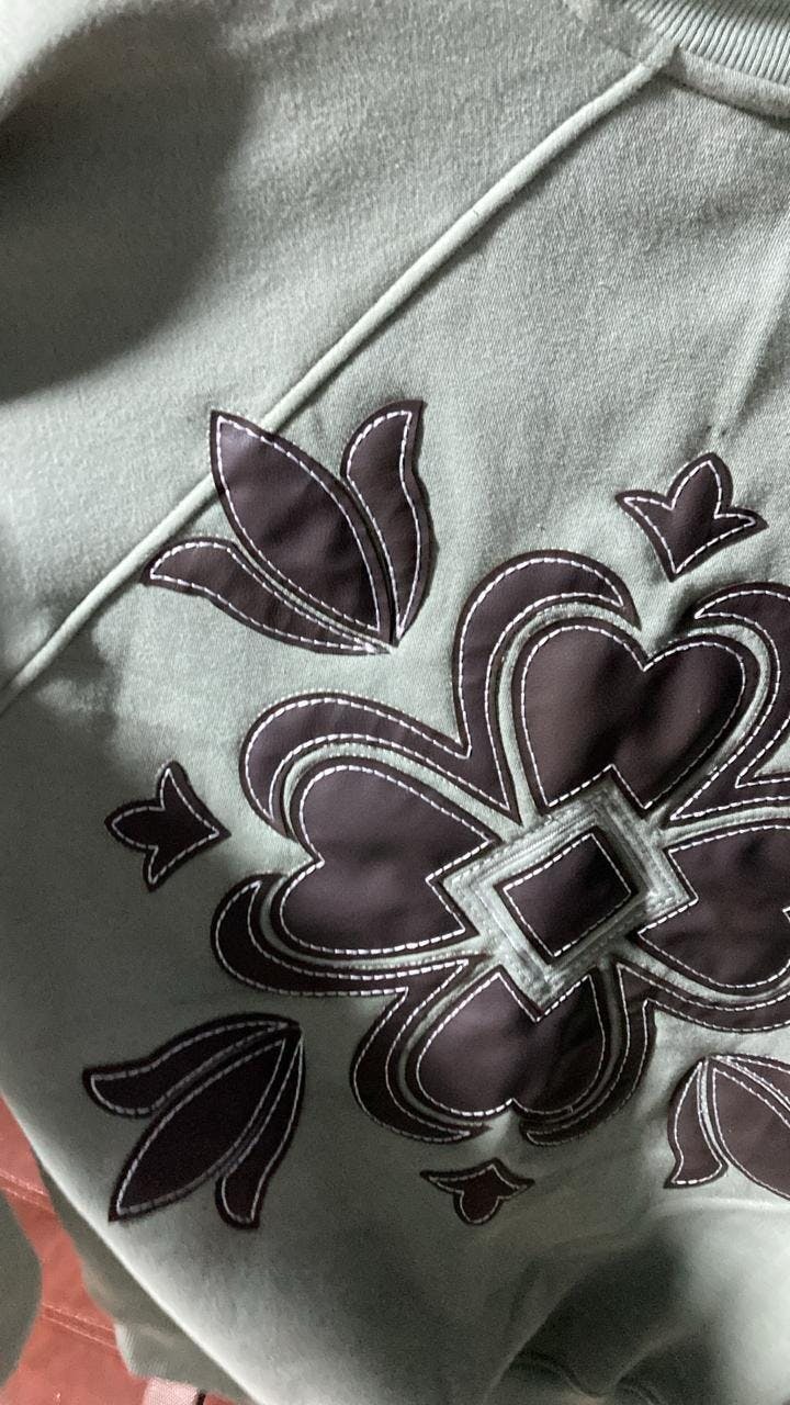 A premium cotton fleece sweatshirt crafted for modern street-luxury. Featuring delicate “VASTAH” embroidery on the front and a full-back leather-like panel with intricate floral artwork, this piece combines soft, structured comfort with bold, statement craftsmanship and elevated textural detailing.